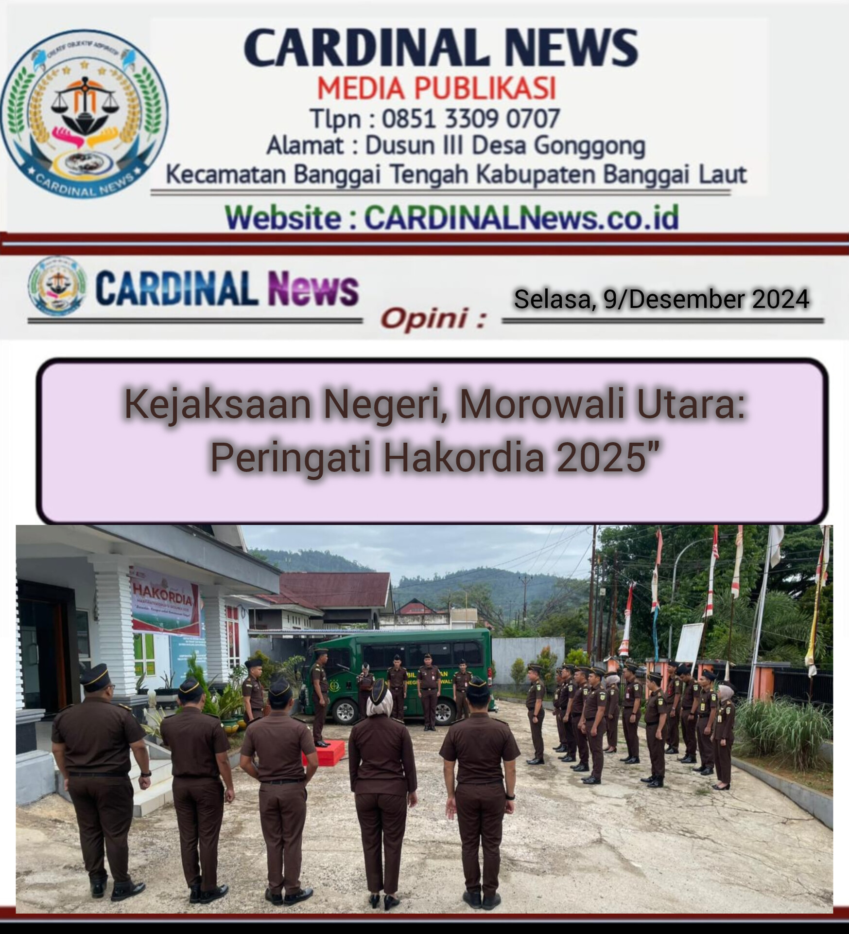 KOLONODALE (Morut), CARDINALNews.co.id – Selasa, (9/12/2025). Kejaksaan Negeri Morowali Utara melaksanakan upacara peringatan Hari Anti Korupsi Sedunia (Hakordia) 2025 pada Selasa, 9 Desember 2025, pukul 07.30 WITA. Kegiatan tahun ini mengusung tema “Berantas Korupsi Untuk Kemakmuran Rakyat.”