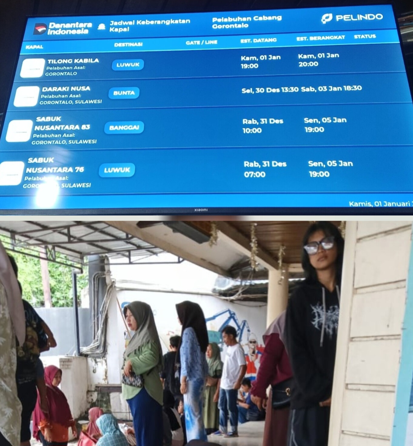 Gorontalo, CARDINALNews.co.id – (5/1/2026). Informasi jadwal keberangkatan kapal Tol Laut yang ditayangkan pada monitor Pelabuhan Gorontalo diduga mengecohkan para calon penumpang pasca libur Natal dan Tahun Baru.