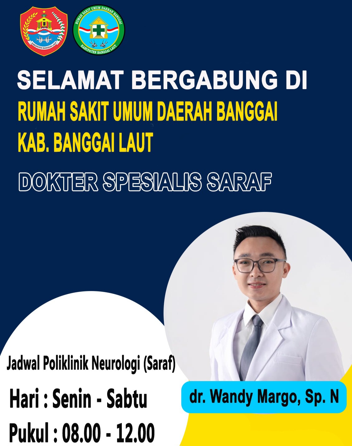 Dokter spesialis saraf yang bergabung di RSUD Banggai adalah dr. Wandy Margo, Sp.N. Kehadiran dokter spesialis ini diharapkan dapat menjawab kebutuhan masyarakat akan layanan kesehatan saraf tanpa harus dirujuk ke luar daerah.