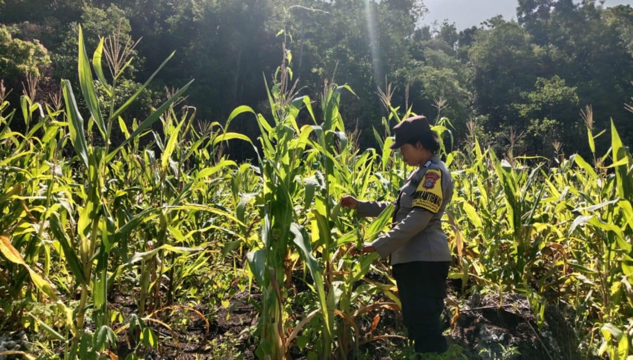 BANGGAI KEPULAUAN, CARDINALNews.co.id – (03/02/2026). Kepolisian Sektor (Polsek) Tinangkung terus menunjukkan komitmennya dalam mendukung program strategis Pemerintah Pusat, khususnya di sektor ketahanan pangan. Pada Selasa (03/02/2026) pukul 10.00 WITA, Bhabinkamtibmas Desa Saiyong, Brigpol Ni Putu Pebi Sujeni Putri, turun langsung ke lapangan untuk melakukan pengecekan pertumbuhan tanaman jagung di kebun milik Pemerintah Desa (Pemdes) Saiyong, Kecamatan Tinangkung, Kabupaten Banggai Kepulauan.