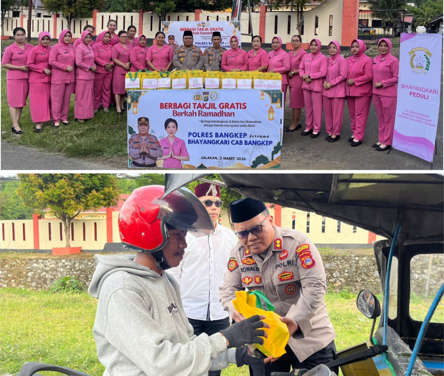 BANGGAI KEPULAUAN, CARDINALNews.co.id – (02/03/2026). Jajaran Kepolisian Resor (Polres) Banggai Kepulauan (Bangkep) menunjukkan kepedulian sosial di bulan suci Ramadan dengan menggelar aksi pembagian takjil. Kegiatan yang dipimpin langsung oleh Kapolres Bangkep AKBP Ronaldus Karurukan, S.I.K., ini berlangsung di depan Mako Polres Bangkep, Jalan Bhayangkara, pada Senin (02/03/2026) sore.