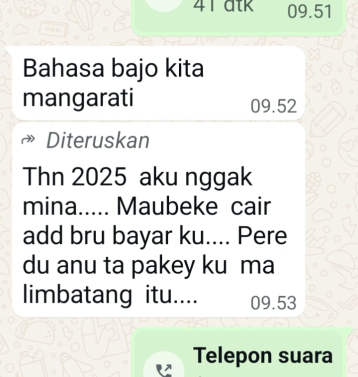 Selain itu, dalam percakapan yang beredar, terdapat indikasi pengakuan bahwa dana PBB sempat digunakan secara pribadi dan akan dikembalikan setelah pencairan Alokasi Dana Desa (ADD). Namun, hal ini masih perlu dikonfirmasi lebih lanjut kepada pihak terkait.