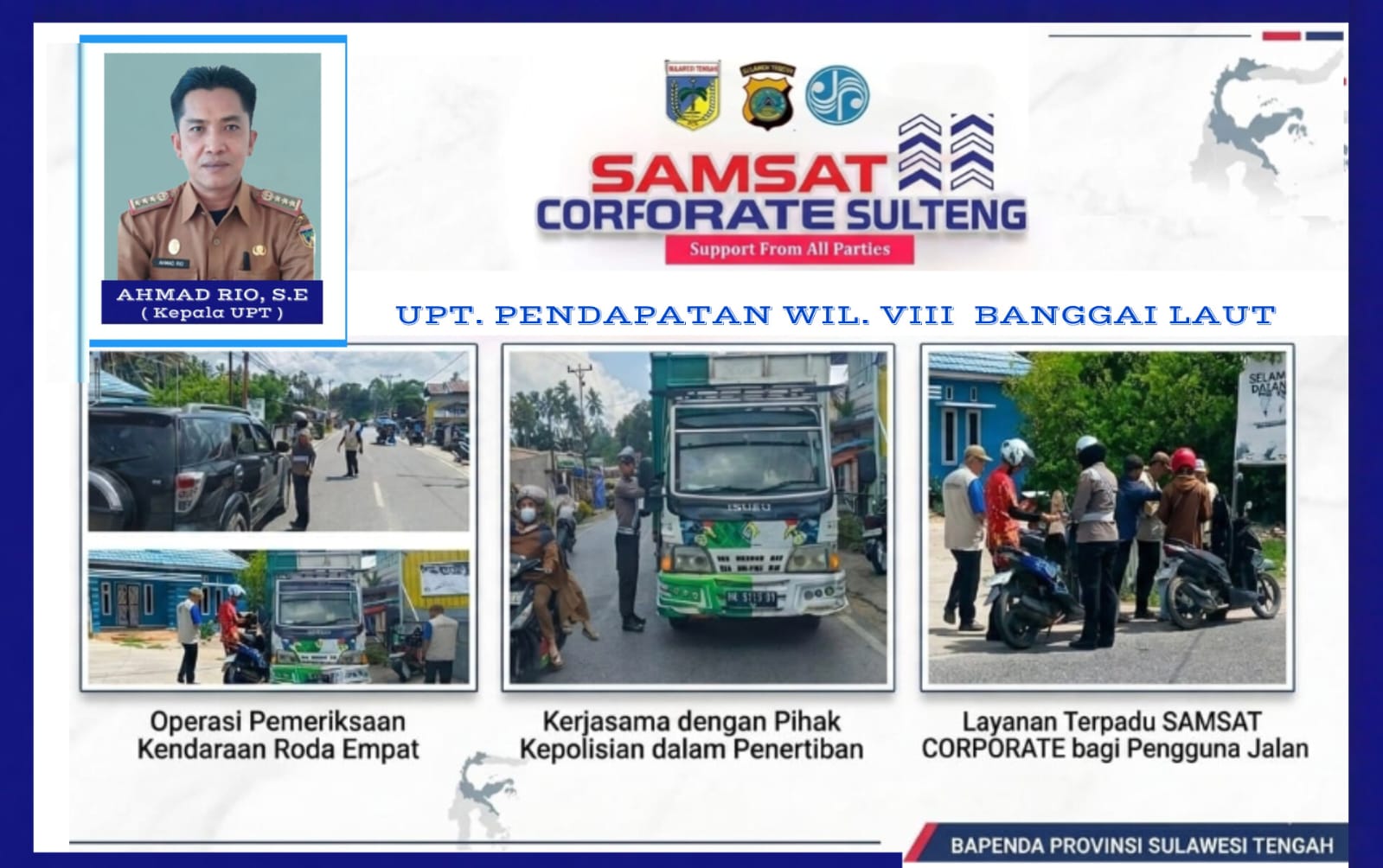 Pemerintah Kabupaten Banggai Laut melalui Badan Pendapatan Daerah menegaskan komitmennya untuk terus meningkatkan kualitas pelayanan serta melakukan berbagai upaya strategis dalam mengoptimalkan penerimaan pajak daerah. (FTT)