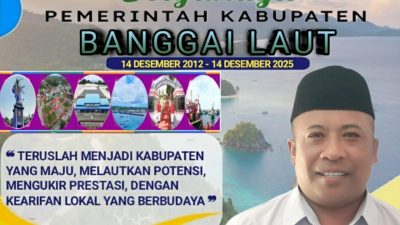 Kepala Sekolah SMPN Banggai, Kabupaten Banggai Laut, KUEMBAH D. LATTA, S.Pd. Mengucapkan: Dirgahayu Kabupaten Banggai Laut Ke 13 Tahun 2025. Menuju Kemakmuran Maritim Yang Berkelanjutan.
